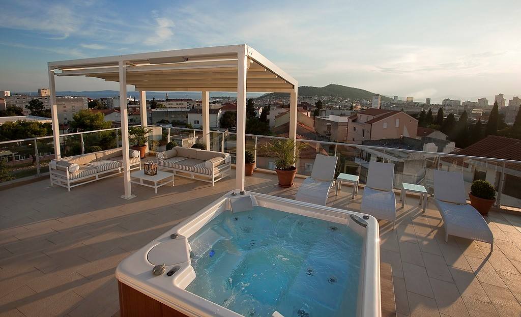 Apartment Split Luxury Residence is richly furnished penthouse with a 200m2 terrace looking down on Split. The penthouse is a 5-minute walk from the very centre – Palace of Diocletian. Treat yourself to an unforgettable vacation in one of the finest residential units of Split.
